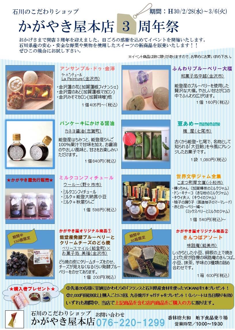 かがやき屋本店三周年祭ということで、期間中にご購入いただいた方にはプレゼント企画もあるそうです。スゴイ!
