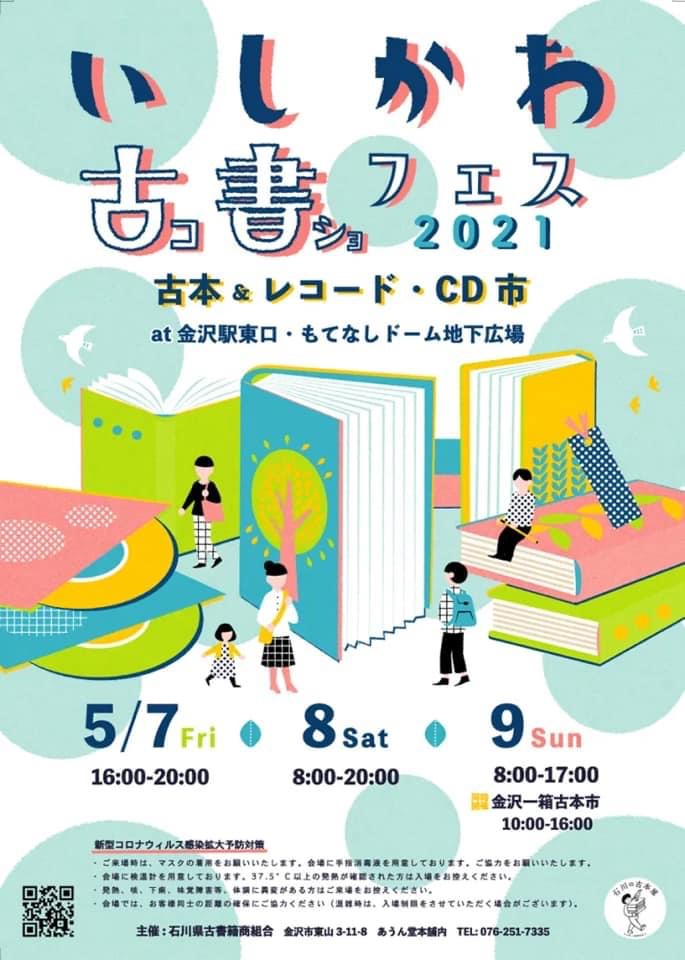 今週末の 5/7(金)〜5/9(日)の3日間、金沢駅東口・もてなしドーム地下広場にて いしかわ古書フェス 2021 が開催されます