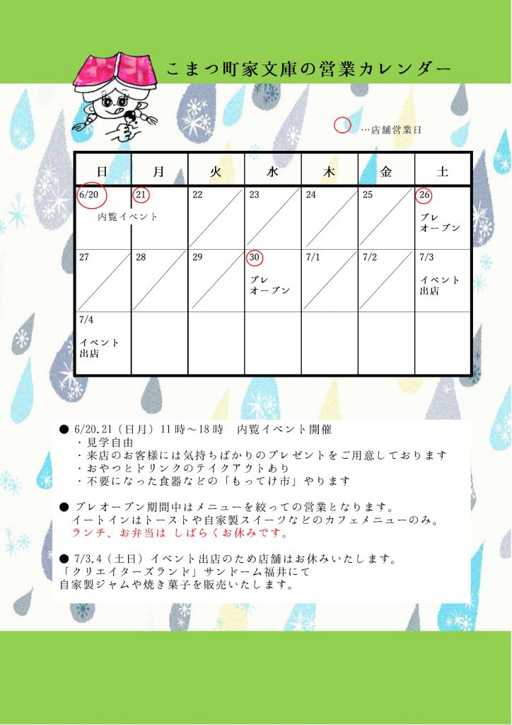 内覧イベント以降、イートインに向けての準備やイベント出店準備の都合もあり、店舗のopen日が 6/26(土)と6/30(水)のみとなっています