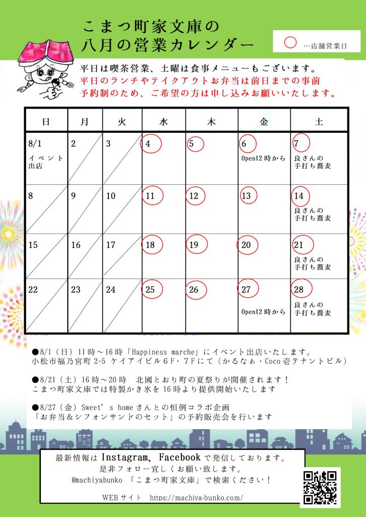 ● 8/21(土)16時〜20時北國とおり町の夏祭り企画「北國とおり町 夕やけてくてく縁日」を行います!こまつ町家文庫は16時より特製かき氷を提供スタート!20時までの延長営業です。