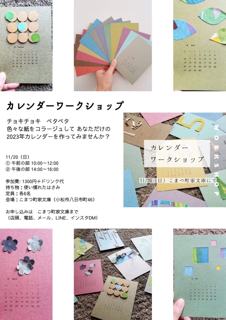 色々な紙をコラージュして あなただけの2023年カレンダーを作ってみませんか?Tetoiroさん( @happa1999 )による人気のワークショップです。念願叶い 町家文庫でもやってもらえることになりました!石川県では初開催となります 皆さまのご参加お待ちしております
