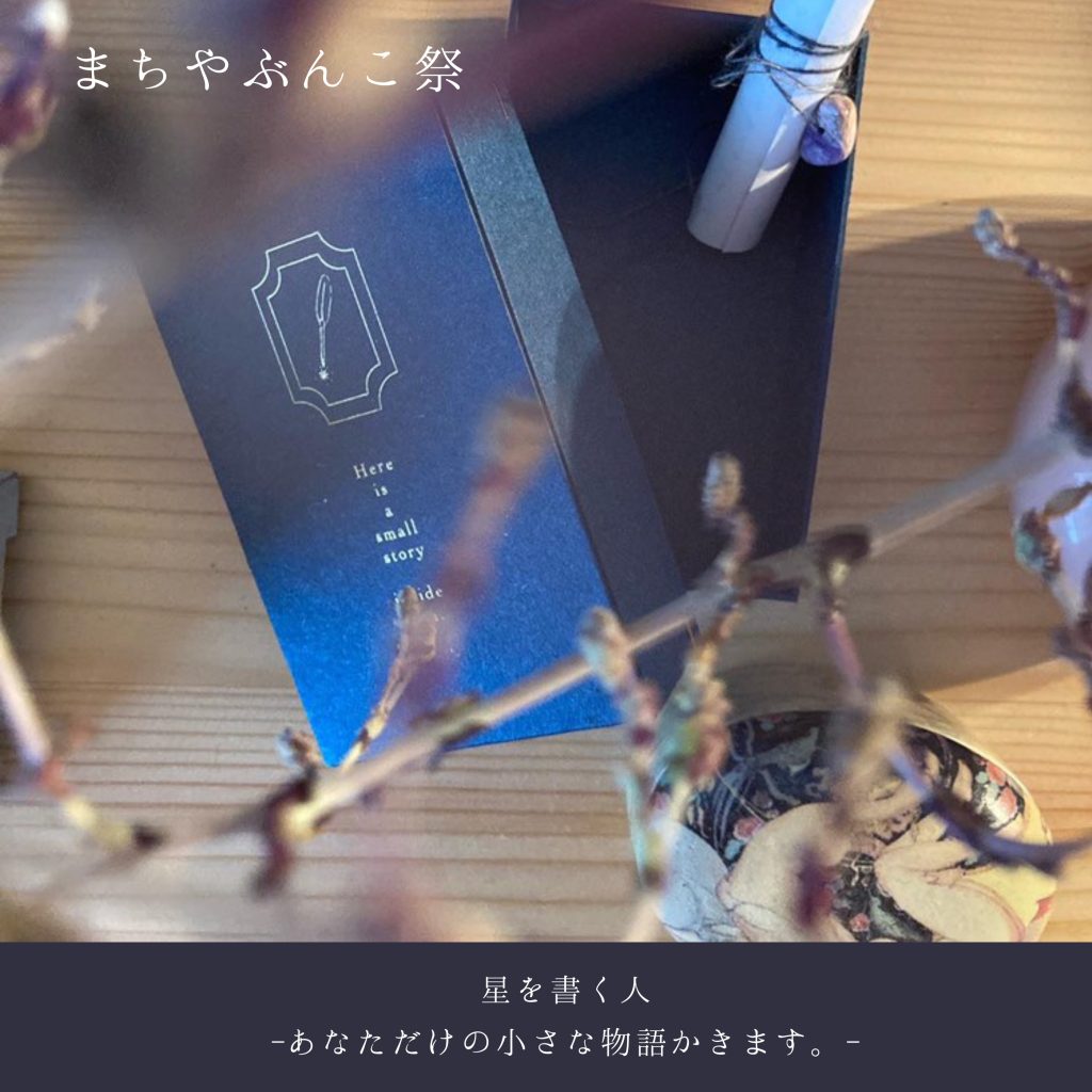 少しだけ質問をさせていただき、わたしが感じたその人の中にある光るものを小さな物語にさせていただきます。光るものを星と命名しています。暗闇に光る星です。物語に賞味期限はありません。今だけでなく、これからずっと先まで。いつ読んでも背中を押してくれたり、寄り添ってくれたり暗闇に光る星のように道しるべになってくれるはずです。催しごとや、街に出没してその場で物語を書いています。