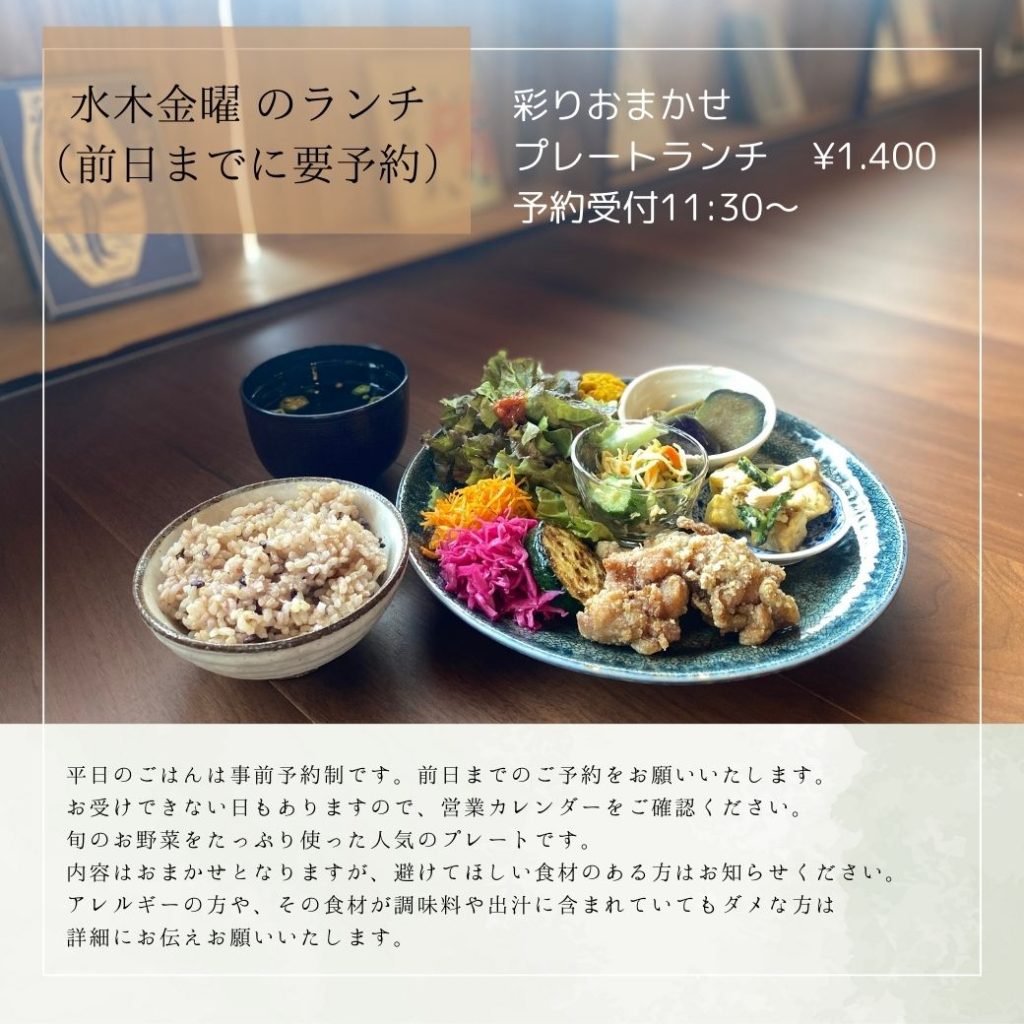 ◯ 水木金曜 のランチ内容は日替わりのプレートランチを【前日までの事前予約】にてご用意しております