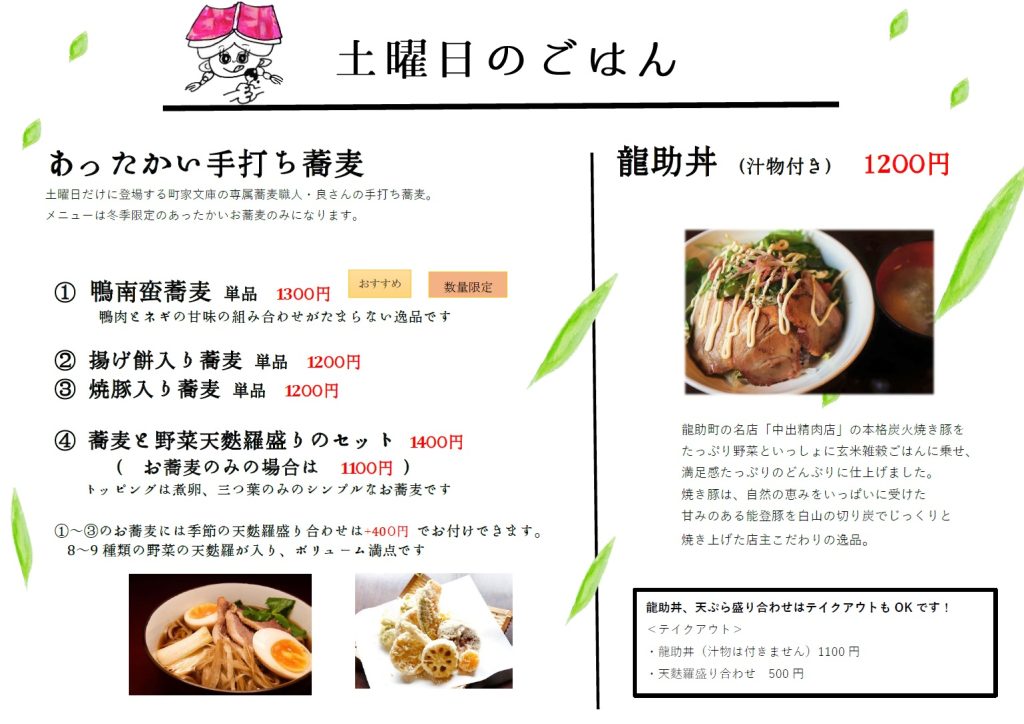 今月から 土曜限定で提供している 手打ち蕎麦は あたたかいお蕎麦メニューとなります(1〜3月)。
